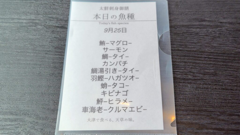 さかなや太鮮の魅力は、御膳ごとに「本日の魚種リスト」が用意されていること。