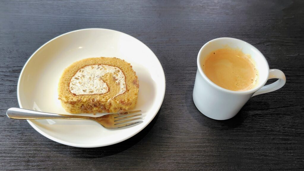 9月、テーブルのお知らせで気になっていた和栗焼き栗ロールケーキをコーヒーとセットで注文。