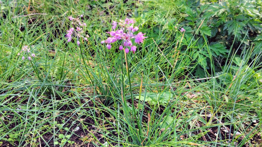 ラッキョウの花、周りの草を残してます。これからは寒さ対策になれば・・・