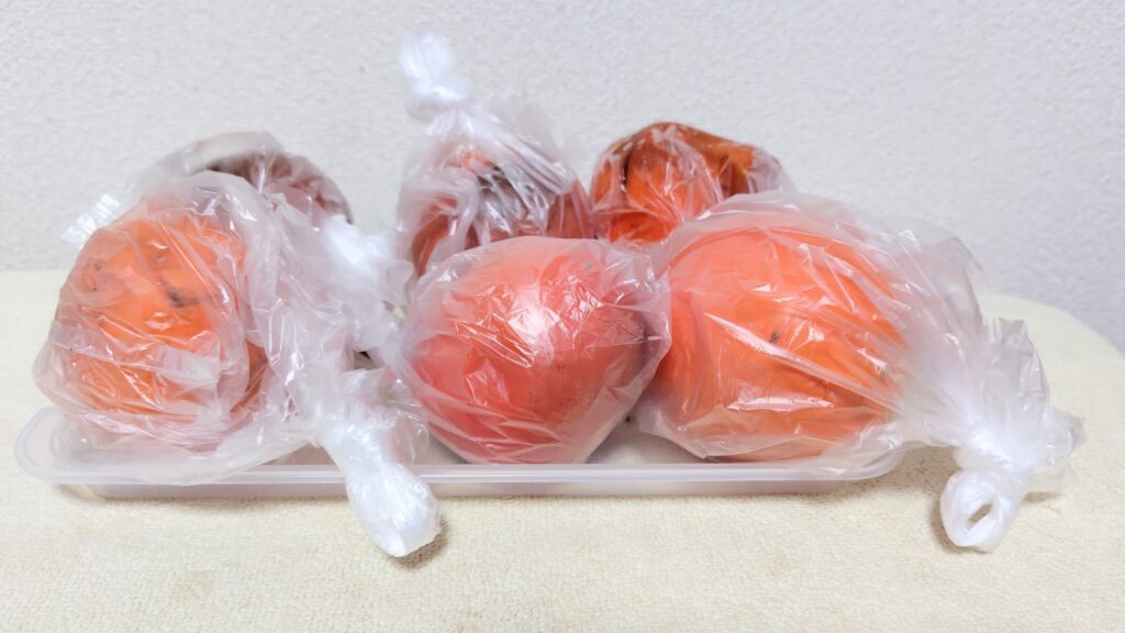 袋に入れることで、柿自身が出す「エチレンガス」による過度な熟成を抑えつつ、乾燥を防げます。 また、果物は冷やすことで果糖の甘みを強く感じる性質があるので、食べる直前に冷やすのは理にかなっているんです。