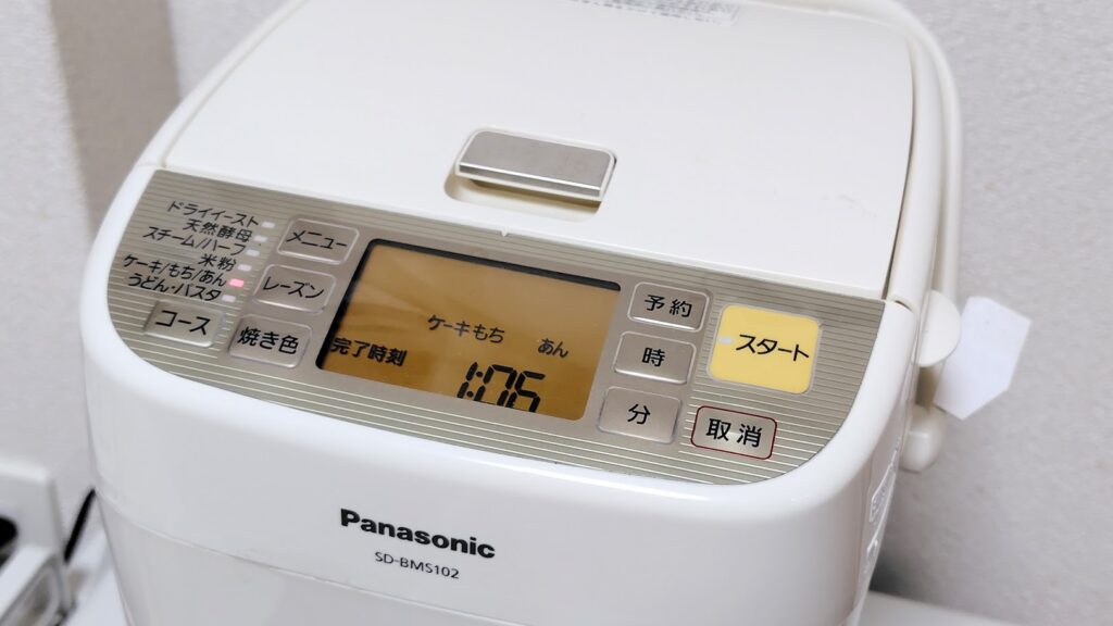 それがこれ。もう15年近く前、2010年製のパナソニック(旧ナショナル)のホームベーカリーです。 最近のスタイリッシュな家電とは少し違う、どこか懐かしいフォルムですよね。