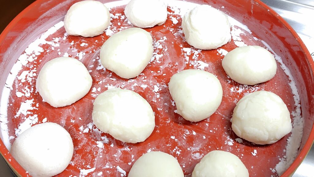 つき上がりの熱々のところを、今度は私が一人で丸めていきます。