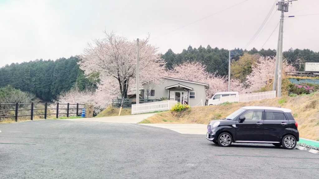 駐車場に車を止めると、すぐそこにも桜が満開に咲いていて。カフェに向かう前から、もう春の中にいるような気分でした。